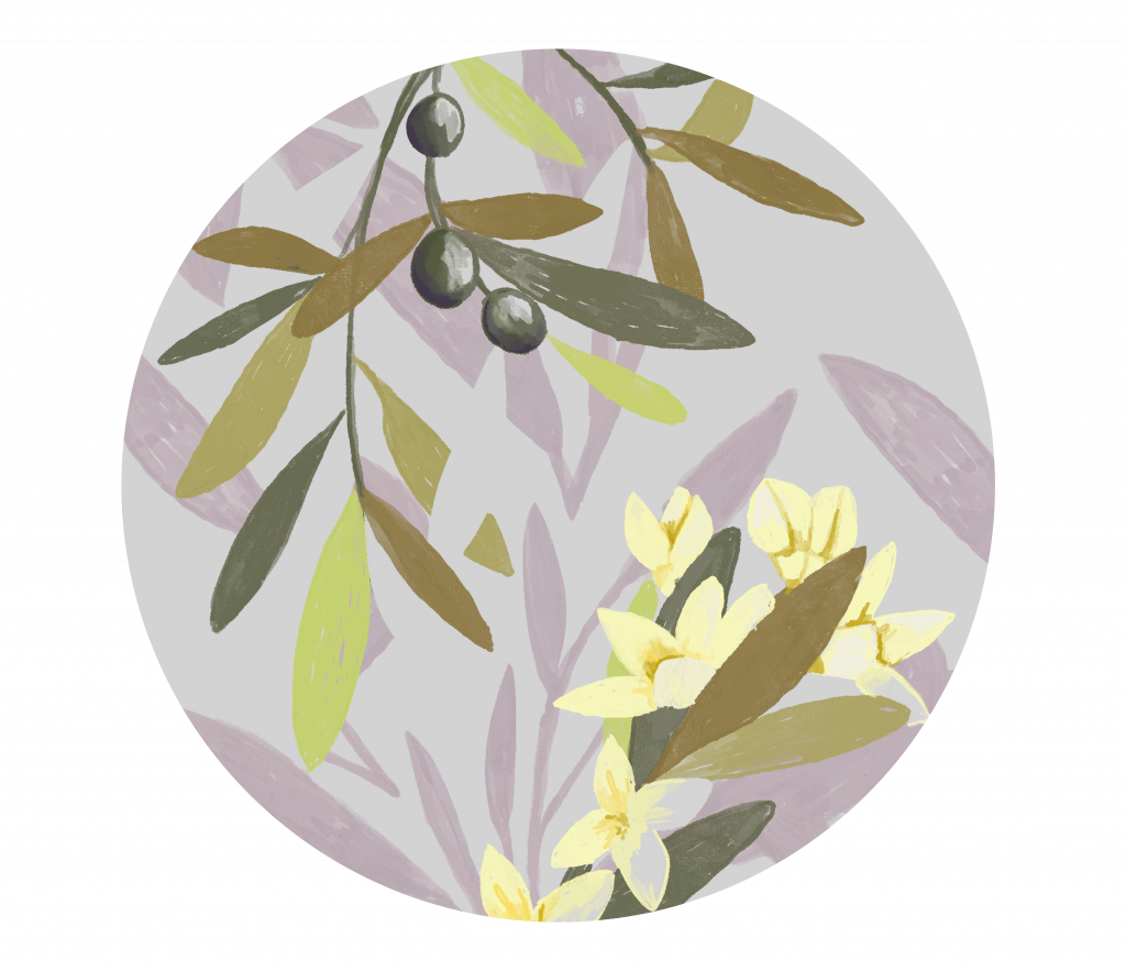 La flor del olivo simboliza la juventud de Marianne, en crecimiento, llena de frescura y posibilidades. Las olivas maduras representan a Pilar, fruto pleno de la experiencia y la sabiduría.