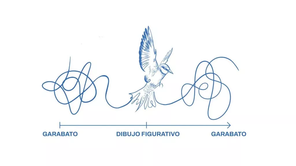 Este mural es un homenaje al espíritu artístico de Camprovín a través de una reflexión sobre la evolución del dibujo como forma de expresión a lo largo de una vida humana.
