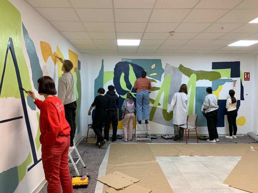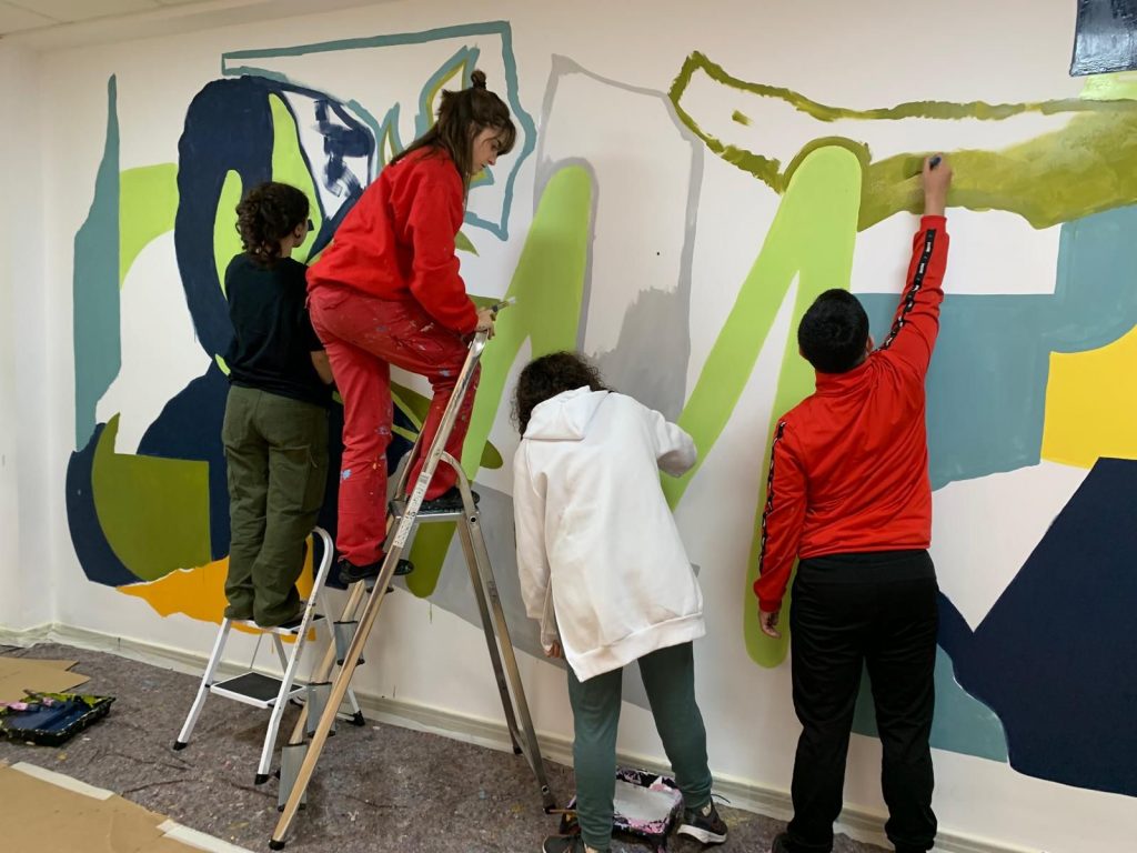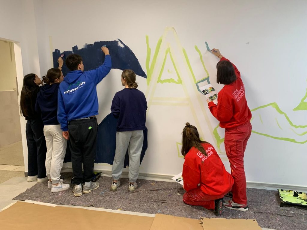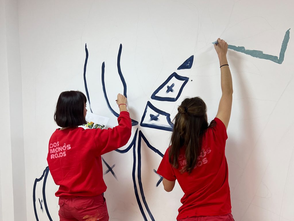 Este taller fue un recorrido por todas las fases de creación de un mural educativo, desde las primeras ideas y los diseños en collage, hasta la pintura participativa que dio forma al resultado final.