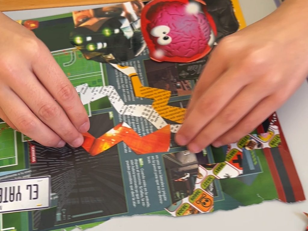 Realizamos un taller con periódicos, revistas, y recortes de materiales sobrantes de otros proyectos.